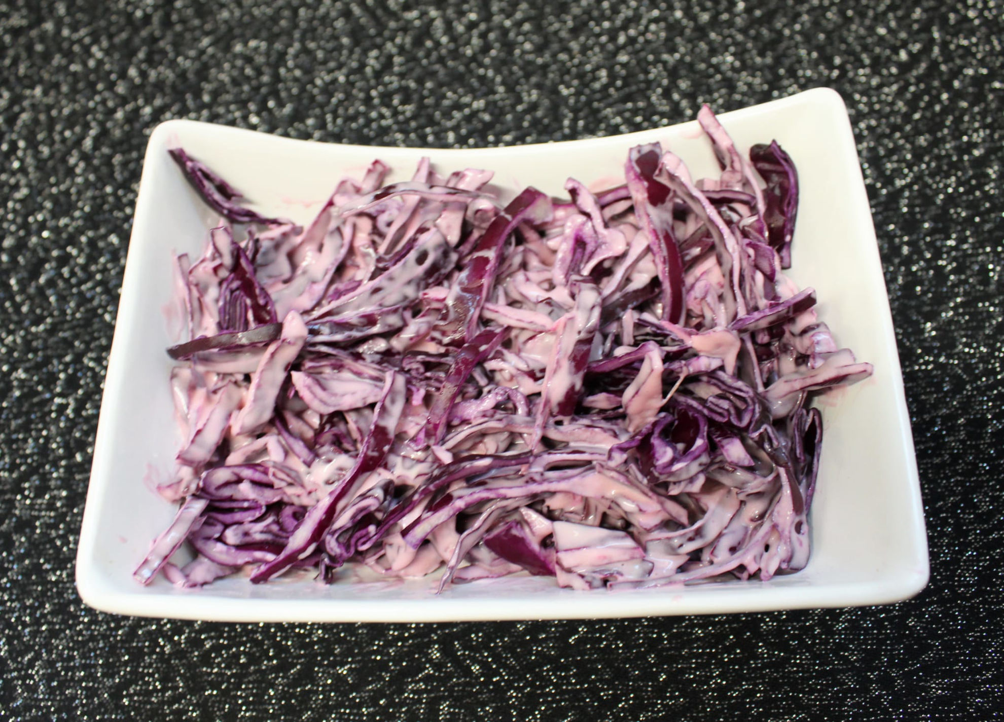La salade de choux rouge par excellence obtenu par le mélange de choux et mayonnaise.